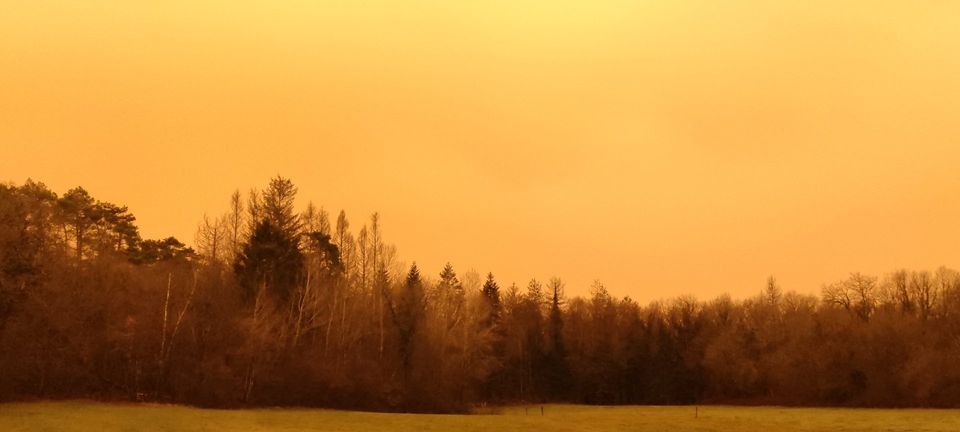 Le bois du Clapay, comme la commune et la région a été traversé par un ciel presque inquiétant… Le matin était jaune et le paysage en était transformé !