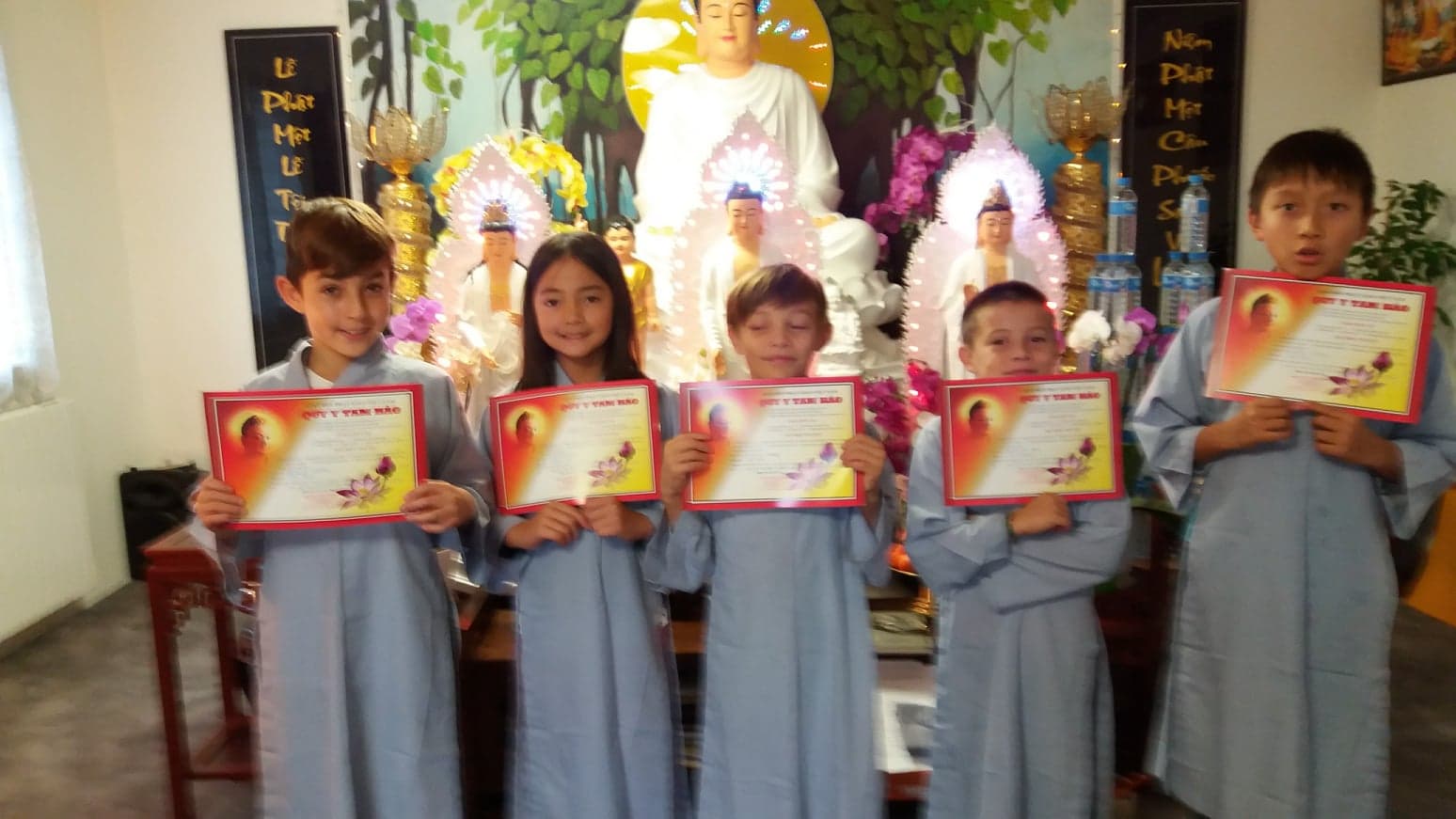 Vào giờ Quy y, theo sự chỉ dẫn của các vị Tăng đang làm lễ, chúng tôi đảnh lễ và phát tâm sốt sắng ba lời thề sau đây:
