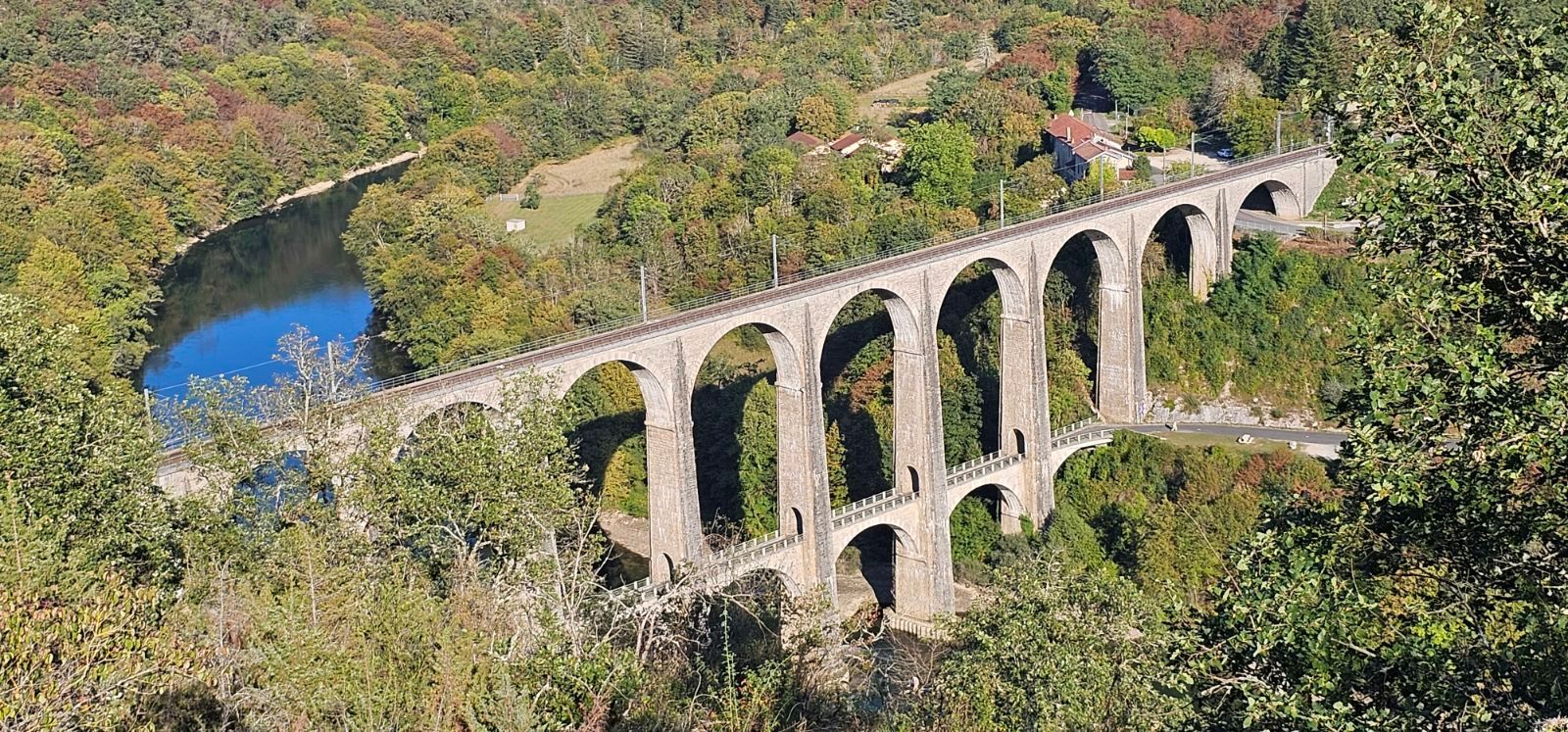 A coté du viaduc dans la montagne on peut voir une roche posée sur une autre.